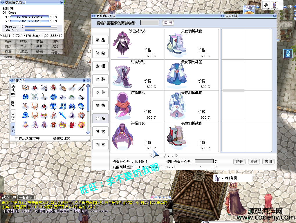 4.NPC位置變化:MVP商店移動到洛陽,去除裝備商店街