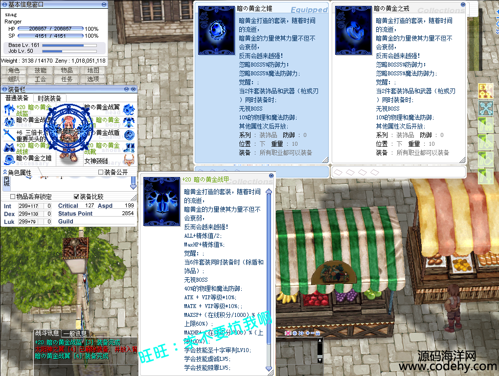 本版經驗20倍,掉寶率20倍,卡片掉落100倍,開放12宮頭飾、圣衣,心羽、暗鳳、暗黃金套裝、神武器。VIP房間有特殊NPC。制作物品集中在普隆德拉工藝坊。綜合市場有新手裝備NPC,幫助新手快速提升實力。普隆德拉中間花園左上有積分、聲望和商城點數NPC,可以進行各種點數兌換。多多利用聲控寶寶可以省去很多點擊NPC的麻煩。如果想自己攻城,首先創建公會,然后調整貢獻比例,公會升級后加出第一個技能才能攻擊華麗金屬。在普隆德拉 【VIP】NPC處可以查詢開啟攻城和其他的指令。