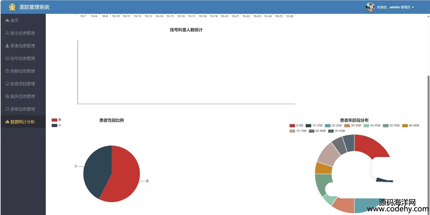 管理員:登錄、醫(yī)生信息管理、患者信息管理、掛號(hào)信息管理、藥物信息管理、檢查項(xiàng)目管理、病床信息管理、排班信息管理、數(shù)據(jù)統(tǒng)計(jì)分析