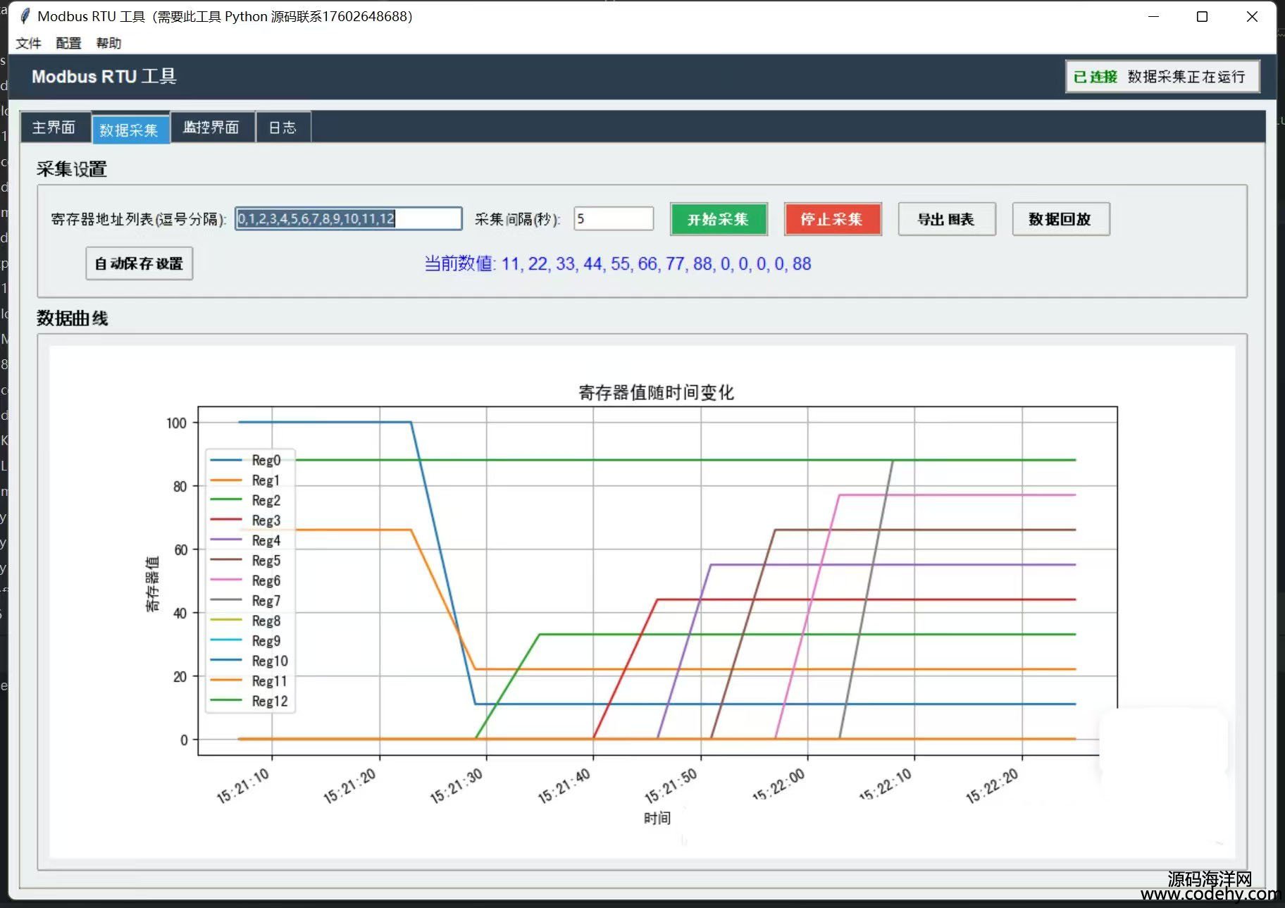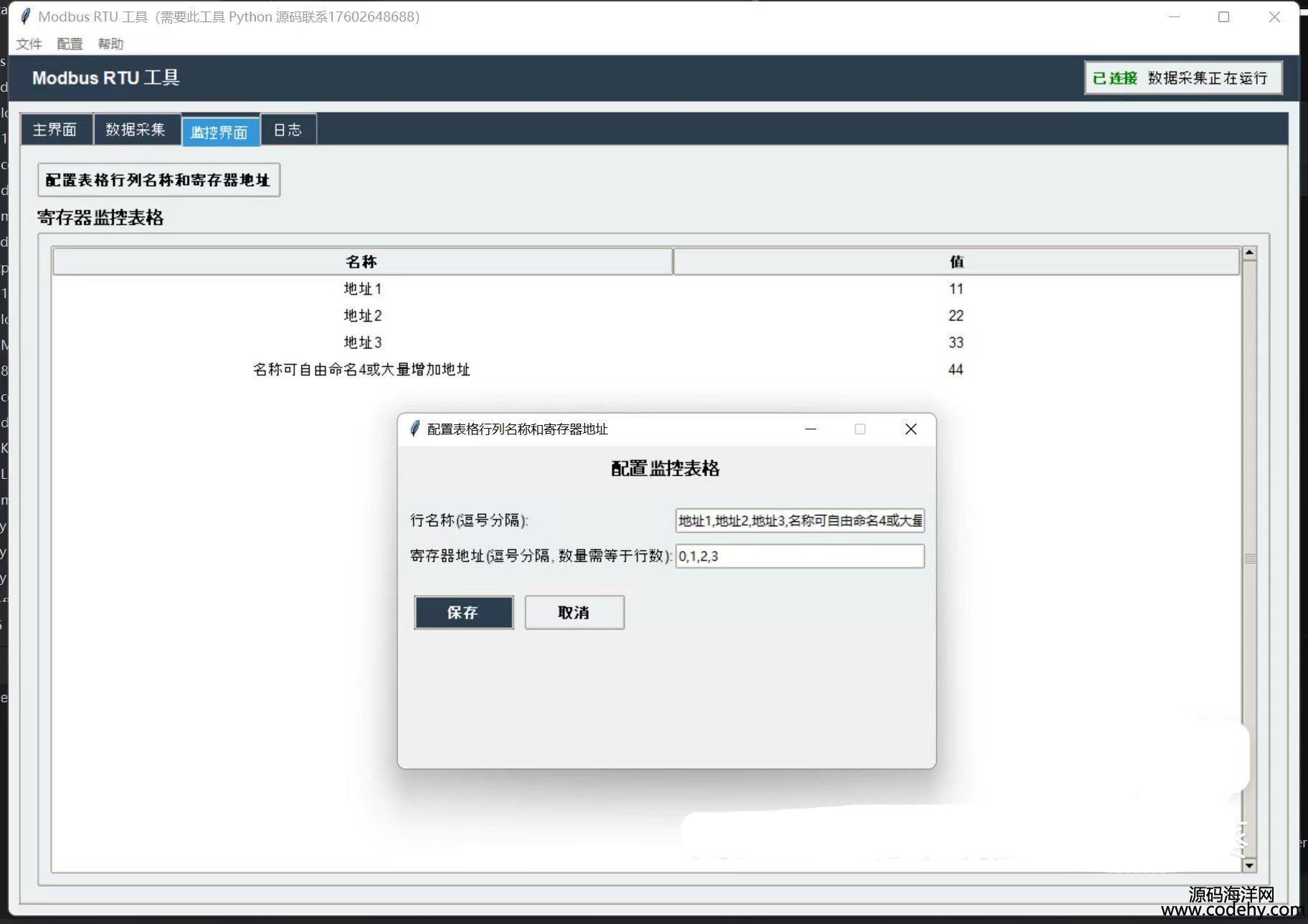 9124-Modbus RTU工具軟件,支持?jǐn)?shù)據(jù)采集和監(jiān)控,帶日志記錄。可以讀寫寄存器,配置表格,監(jiān)控寄存器變化 Python源碼
